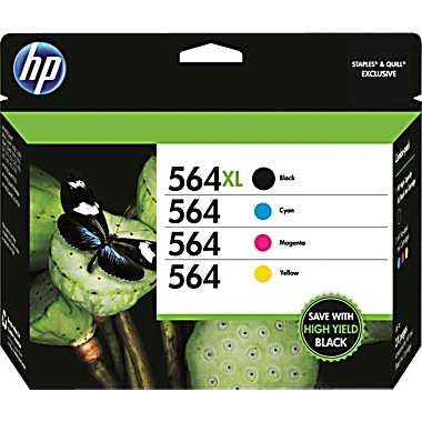 Listprice: $ 46.99 Price: $ 46.99 Saving: 0$ Product Details: - Product Details HP 564XL/564 High Yield Black and Standard Color ink cartridges offer the finest quality and consistency for all your documents, projects, and presentations HP564XL yields up to 550 pages HP564 color cartridges yields up to 300 pages each Multi pack! Save up to 10% when you buy combo instead of individual cartridges. The unmatched reliability of original HP ink cartridges means consistent convenience and better value Fade-resistant color provides superior results and brilliant, true-to-life images that last for generations Specifications Wide Format Compatibility No Ink/Toner Cartridge Type Original Ink/Toner Pack Size 4/Pack Page Yield Per Package (Up to) N/A Supply Type Ink Shipping Free Shipping Cartridge Yield Type High Yield/Standard Ink/Toner Color Black/Color